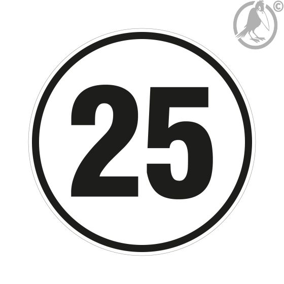 Geschwindigkeitsschild 25 km/h, gemäß StVZO § 58, Folie, selbstklebend, Ø 200 mm