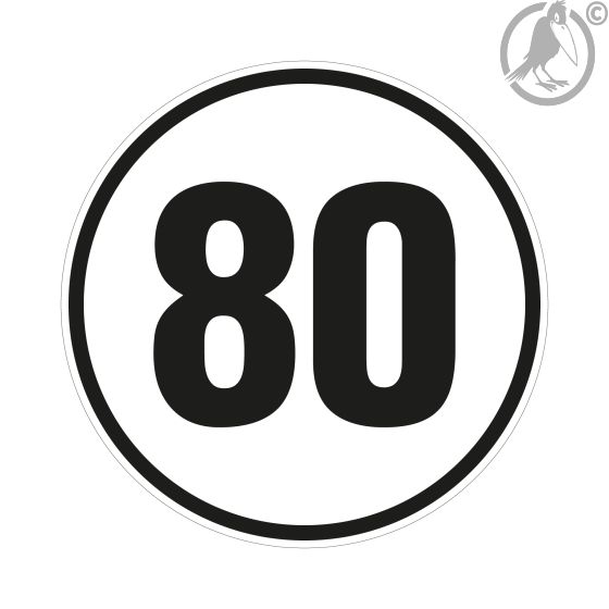 Geschwindigkeitsschild 80 km/h, gemäß StVZO § 58, Folie, selbstklebend, Ø 200 mm